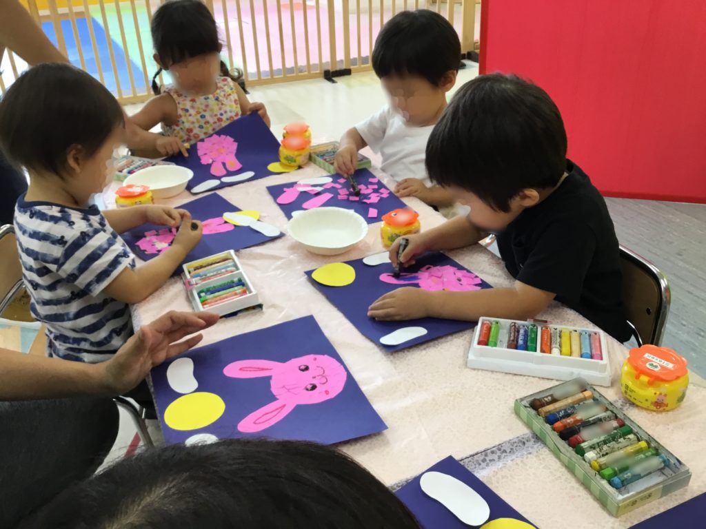 とっても可愛い十五夜お月様と可愛いうさぎのクラフトをしました。みんな、とっても上手にできました。