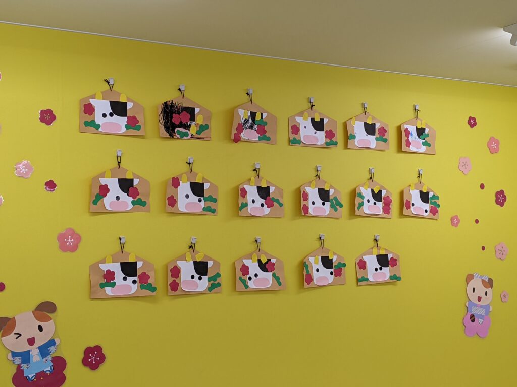 今年の干支、丑の絵馬を作りました。みんなどんなお願いをしたのでしょうか。