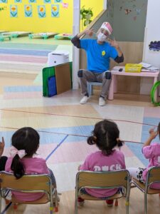 今日も英語のレッスンを楽しそうに受けていました。レッスンの後は公園で元気いっぱいに遊びましたよ。