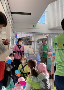 毎月恒例の避難訓練。今月は地震からの火災を想定し、インターナショナルスクールと合同で行いました。泣き出す子もいましたが、スムーズに1階に避難することが出来ました。