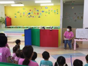 毎月違うテーマで、看護師の先生が保健についてのお話を子供たちに聞かせています。