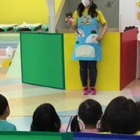 毎月のお誕生会、先生たちからの出し物は毎月違うもを行っています。 5月は【クマさんのパンケーキ】エプロンシアター♪ 子供達も次は何が出て来るのか?と、とっても興味を持って 集中して楽しんでいました。
